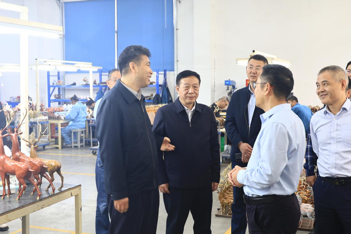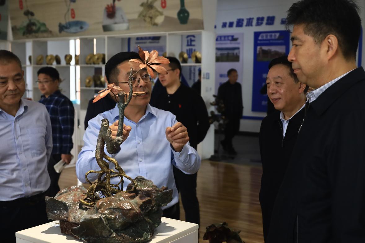 公司負(fù)責(zé)人郭飛陪同參觀并匯報(bào)了企業(yè)生產(chǎn)經(jīng)營(yíng)、市場(chǎng)銷售、非遺技藝傳承等情況。調(diào)研組深入車(chē)間詳細(xì)了解銅工藝品制作技藝、工藝傳承創(chuàng)新,曲福田副主任對(duì)我公司把傳統(tǒng)工藝和現(xiàn)代創(chuàng)意有機(jī)結(jié)合做法給予充分肯定,并就優(yōu)化產(chǎn)品結(jié)構(gòu)、提升產(chǎn)品競(jìng)爭(zhēng)力與公司負(fù)責(zé)人進(jìn)行交流探討,他希望銅官府進(jìn)一步強(qiáng)化品牌培育,用匠心延續(xù)銅工藝的“金”字招牌。