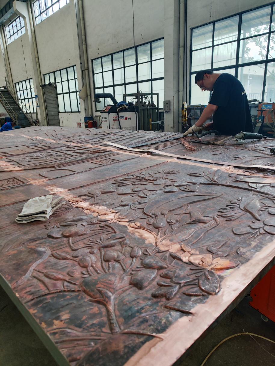 12月26日,龍龍高鐵龍巖至武平段正式開通運營,由銅陵銅官府文化創(chuàng)意股份公司設計并制作的大型銅浮雕在上杭高鐵站正式交付使用。該項目在地方政府支持下,公司全體員工克服了雙曲面、體積大、畫面復雜、安裝難度高等困難,歷時3個月順利完工。