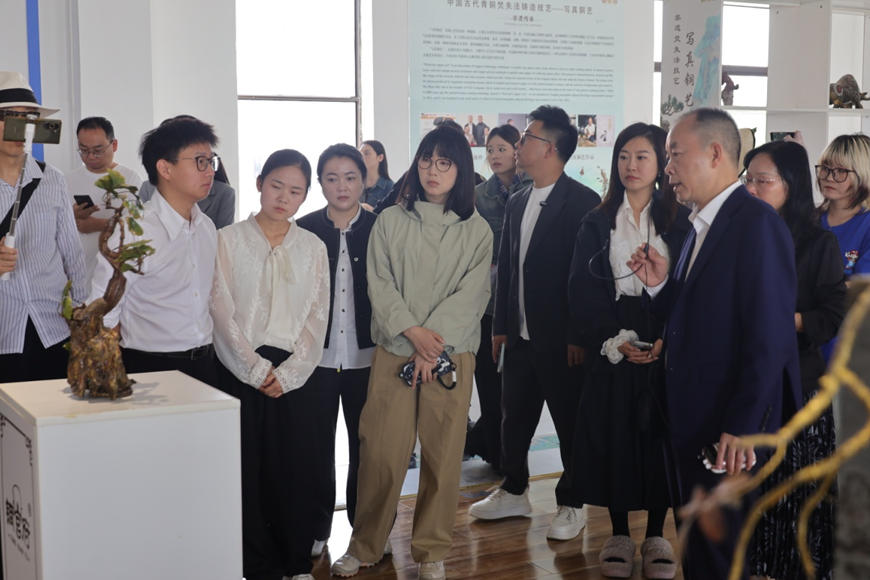 采風(fēng)團(tuán)重點(diǎn)探秘了安徽省省級(jí)非物質(zhì)文化遺產(chǎn)——失傳2500年的“古代青銅焚失法鑄造技藝”,聆聽工藝美術(shù)大師講解銅料甄選、焚失成型等核心工序,直觀感受非遺工藝的匠心與傳承,紛紛用鏡頭和文字記錄,為銅文化與銅官府的堅(jiān)守創(chuàng)新點(diǎn)贊。